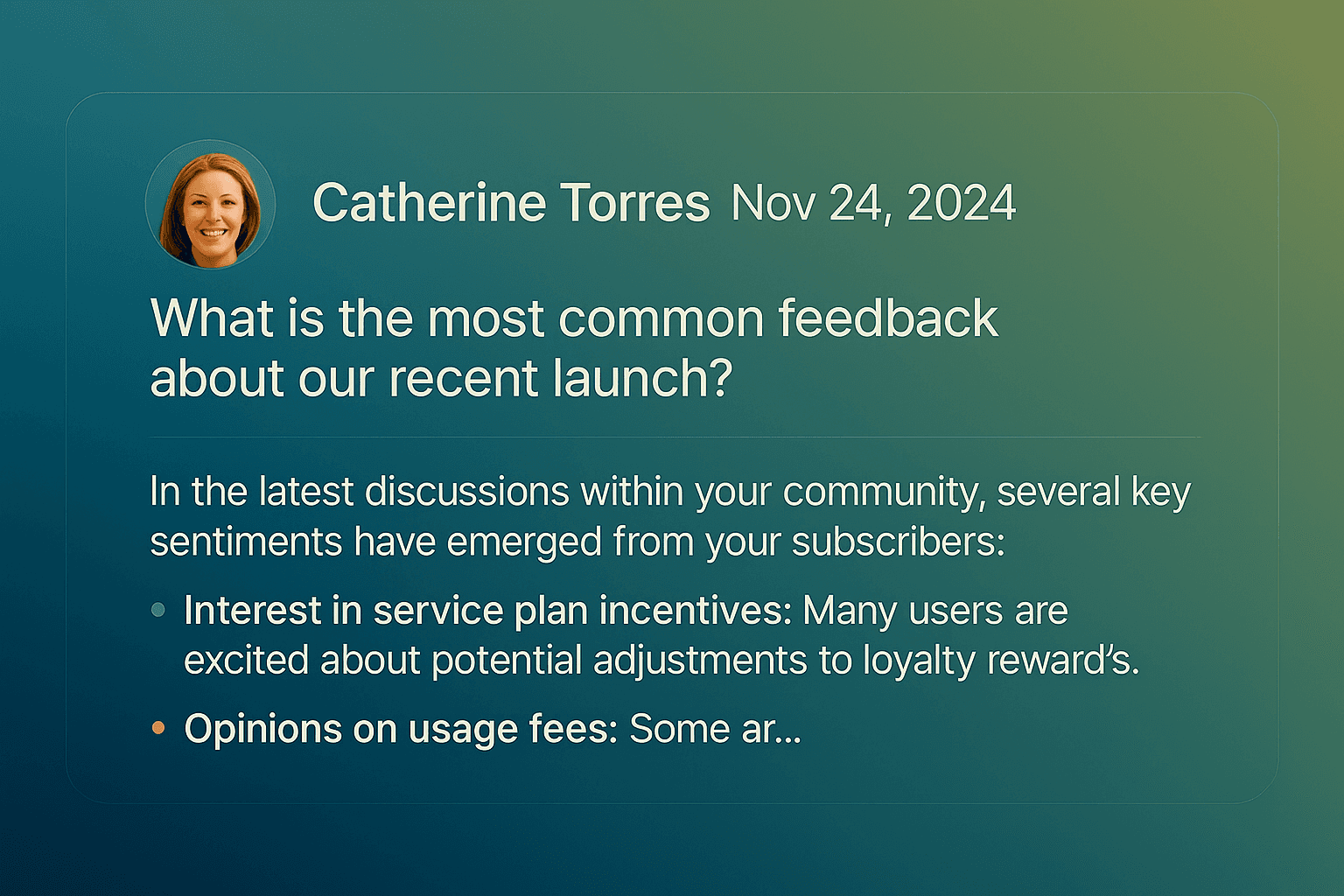 Instantly see how your community feels, what topics are hot, and where sentiment is shifting. Easily pick up on nuance, sarcasm, and common inquiries so you're always ahead.