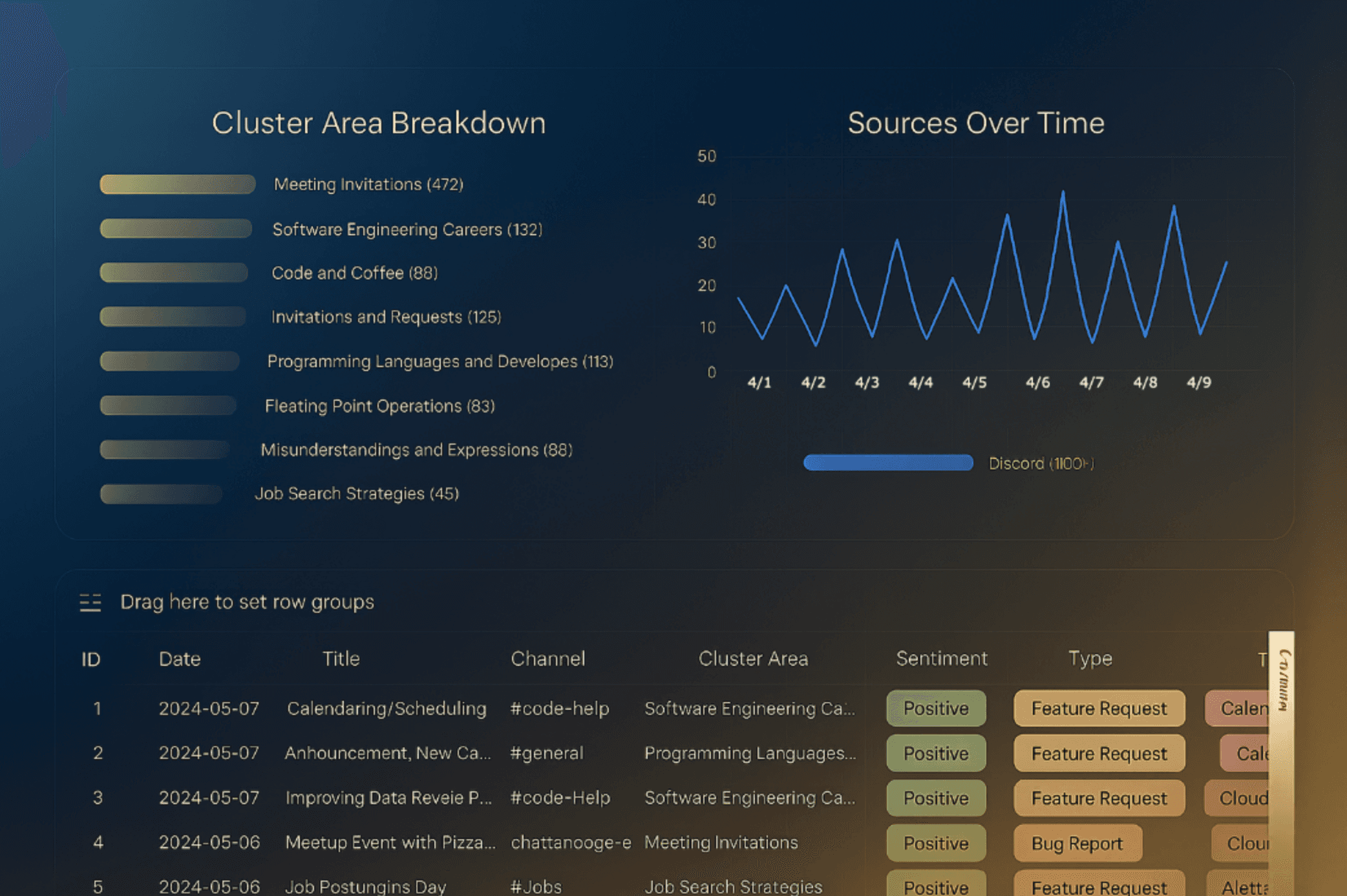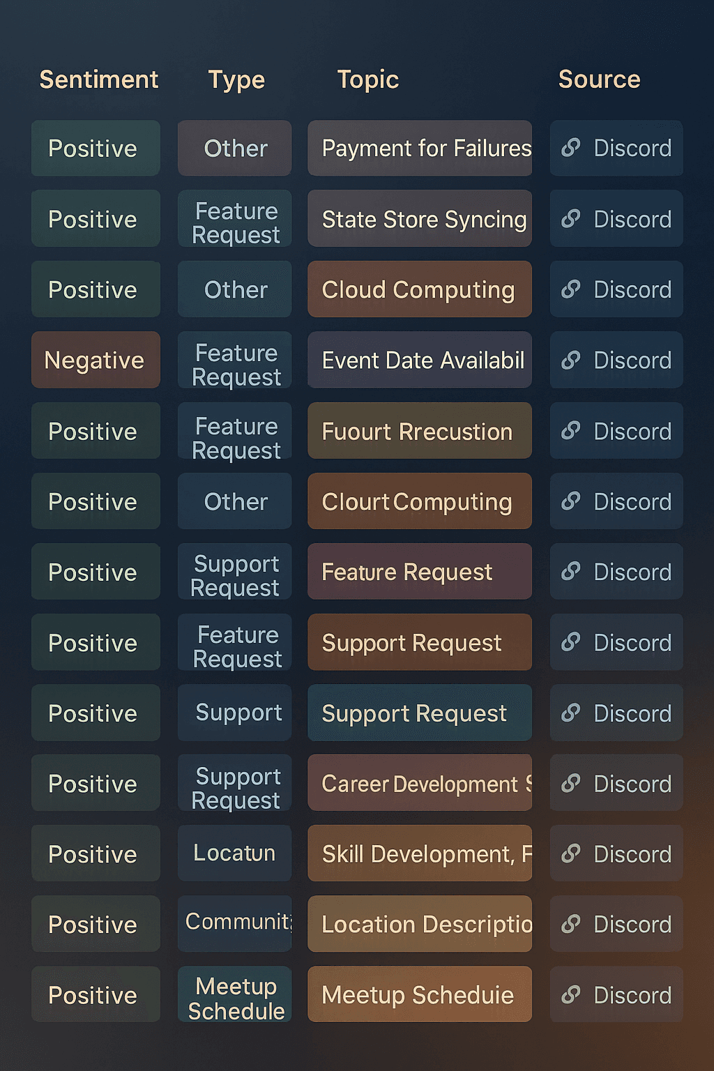 Instantly classify conversations by topic, sentiment, or urgency. Key questions, high-priority support requests, and critical community signals rise to the top automatically.