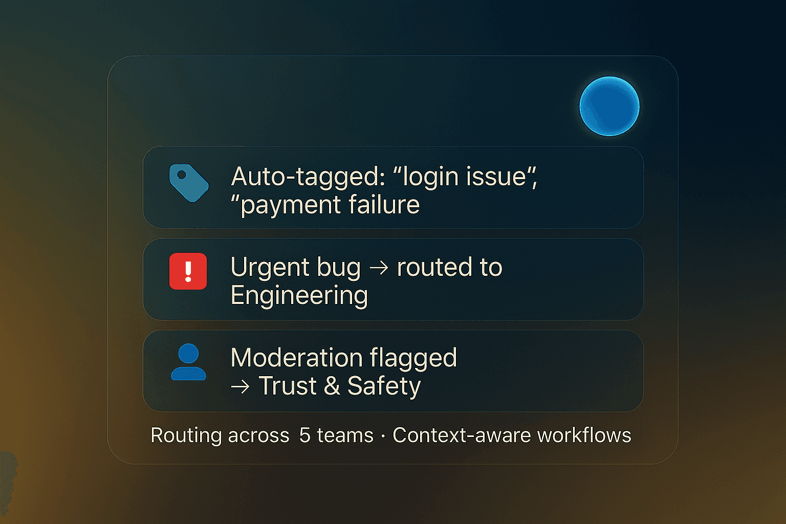 Your routing and triage expert. Automatically tags, prioritizes, and routes every issue to the right team: Support, Community, Product, Engineering, even Trust & Safety, based on urgency and context. No manual sorting, no more missed escalations, just streamlined workflows.